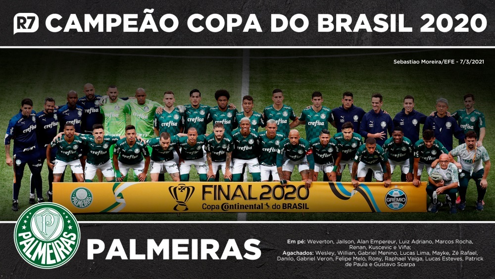 Palmeiras chegou neste domingo ao quarto título na história da Copa do Brasil. Antes da edição de 2020, o Verdão já havia vencido a competição em 1998, 2012 e 2015.